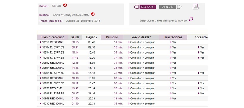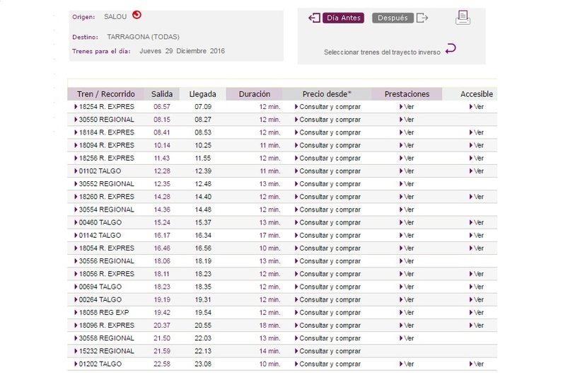 Билеты на пригородные поезда через интернет не продаются, но их можно купить старым знакомым способом в кассе или в терминале на вокзале. Покупайте билет сразу в Ситжес, его нужно будет прокомпостировать на обеих станциях, и в Салоу, и там где будете совершать пересадку.
