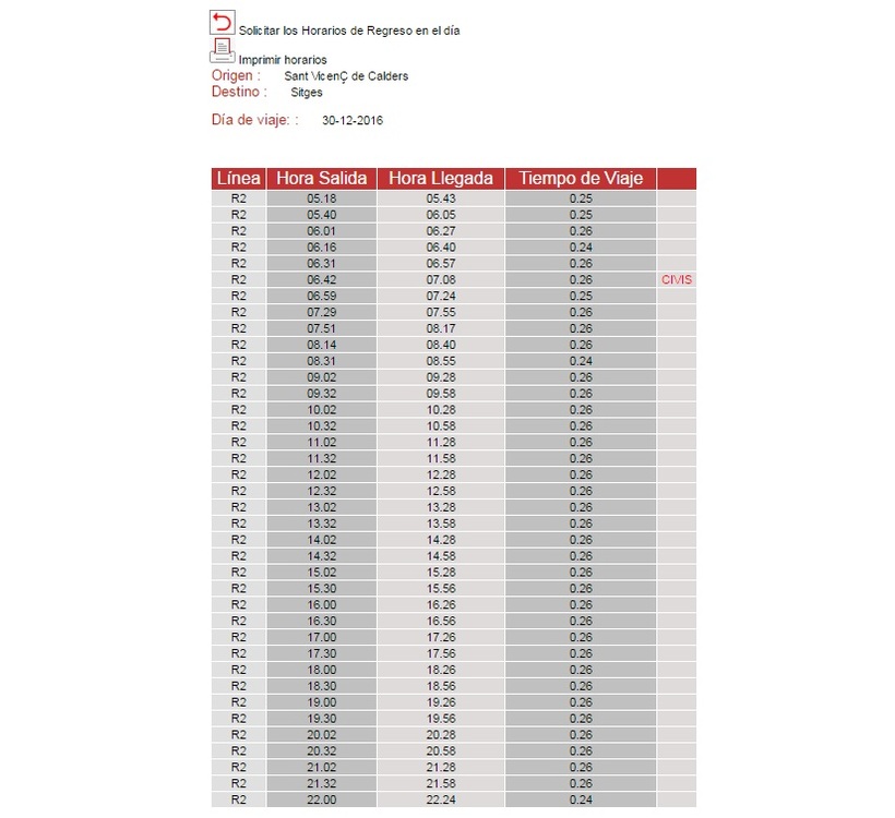 Вот расписание из Таррагоны в Ситжес, эта поездка займет 40-55 минут: