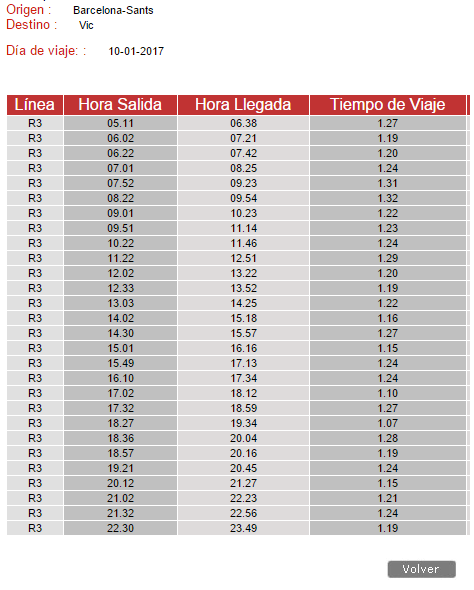 А вот так расписание электричек от Барселоны до города Вик.