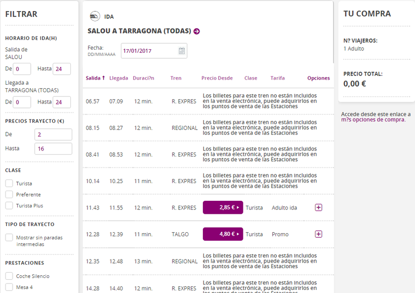 Стоимость у билетов очень различная, она зависит от типа поезда и класса билета. Я буду отталкиваться от минимальной стоимости билетов. Билет от Салоу до Таррагоны стоит от 2 евро, билет от Таррагоны до Сарагосы стоит от 12 евро.