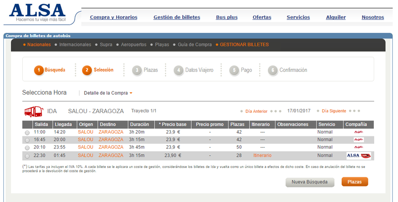 Если исключить поездку из Салоу в Сарагосу на машине и выбирать только из общественного транспорта, то здесь не надо долго думать. Когда между городами есть прямое автобусное сообщение, тем более в день отправляется четыре рейса, то выбор очевиден. Пускай дорога на автобусе дороже, чем поездка на поезде с пересадкой, но разница в 10 евро – не такая и большая, чтобы мучить себя пересадками. Хотя, скупердяи вроде меня, могут добраться в Сарагосу на поезде с пересадкой быстрее и дешевле :)