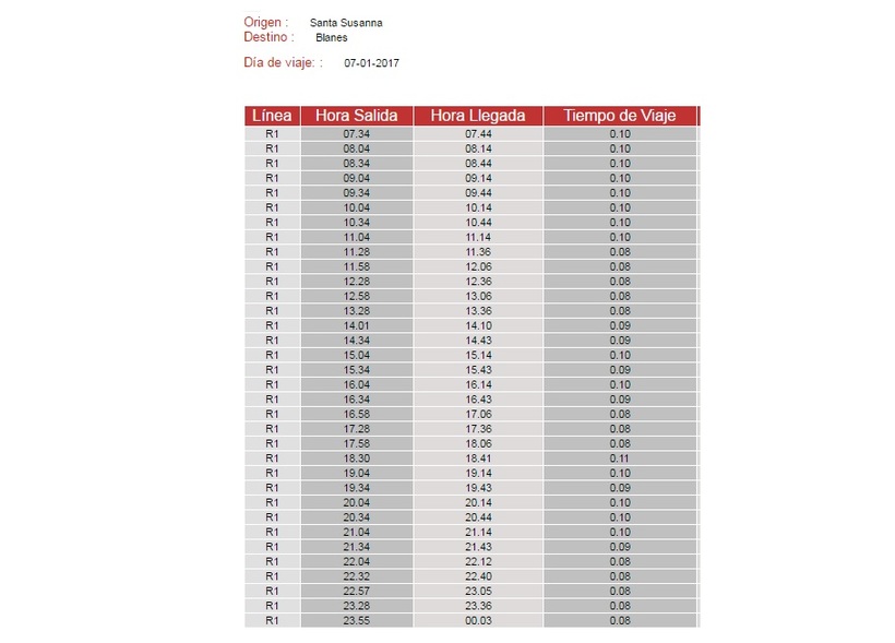 Кроме автобусов в Бланес ходят и барселонские электрички. Их расписание можно посмотреть на сайте Renfe, для этого выберете станции Санта Сусанна и Бланес. Чем мне понравились поезда, так тем, что они ездят гораздо чаще автобусов, а поездка занимает 10 минут.