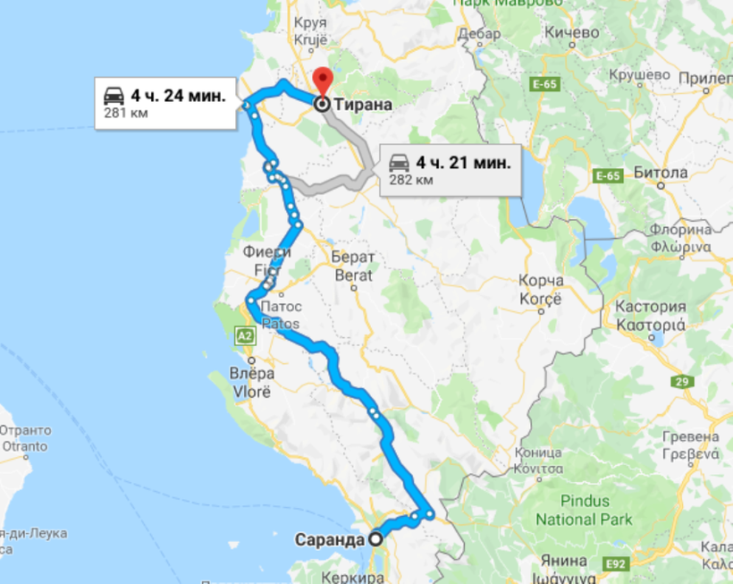 Тирана расположена в 281 км от Саранды, и проехать такое расстояние на машине получится не быстрее, чем за 4,5 часа.