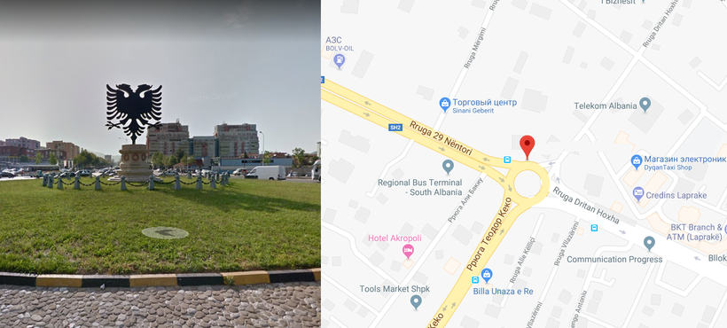Путь до Тираны автобусы преодолевают за 4 ч. 40 мин., а конечной остановкой в Тиране у них является площадь Орла (Sheshi Shqiponja).