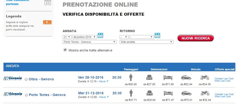 В Геную выполняют рейсы компании Tirrenia, расписание можно посмотреть как на сайте компании, так и на сайте Moby: