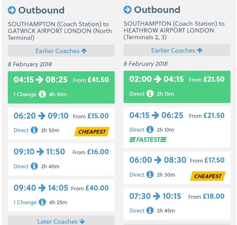 Прямиком в Нью-Йорк можно вылететь из Лондона, рейсы есть из аэропортов Гатвик, Хитроу и Сити. Причем, в терминалы Гатвика и Хитроу из Саутгемптона возможно доехать без пересадок за 2-3 часа на автобусах National Express: