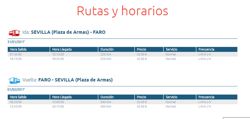 По маршруту Севилья - Фаро курсирует транспорт от двух компаний - ALSA и Damas.