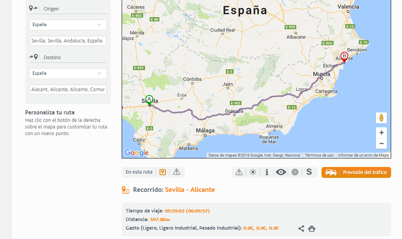 Маршрут поездки из Севильи в Аликанте должен быть на следующий: