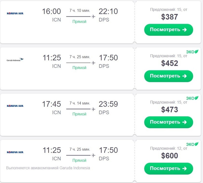 Билет до Бали от 387 долларов (от 437 тысяч южнокорейских вон или 24,5 тысяч рублей).