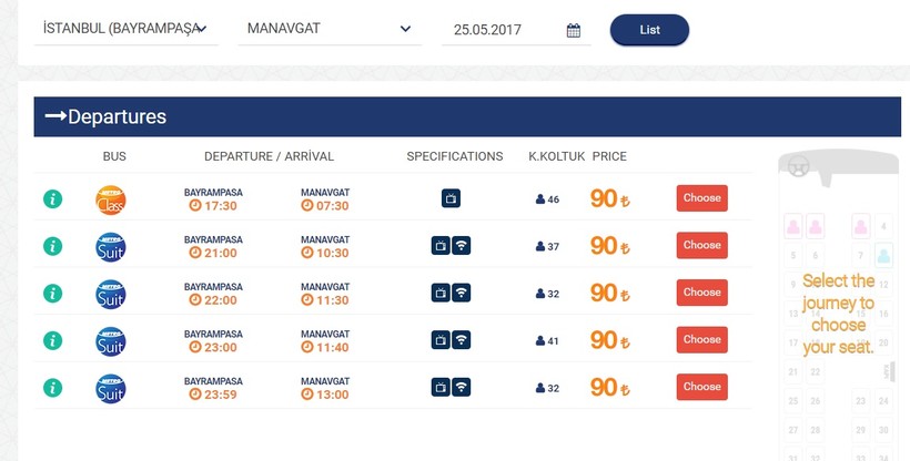 Подсесть на рейс можно и на остановках Alibeyköy Tesis и Samandıra Tesis, если до центрального вокзала далеко добираться. В Манавгат автобусы едут аж 13 часов, выезжают вечером или поздно ночью. Перед Манавгатом автобус делает остановку на Side Kavsagi, как я писала выше, это остановка на трассе где-то в этом районе: