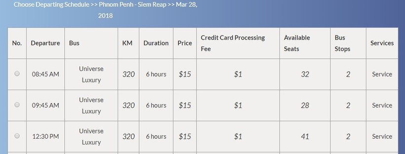 Что касается автобусов, то, просматривая сайты перевозчиков, я увидела нечто странное — на сайте компании Virak Buntham указаны прямые рейсы из Сием Реапа в Хатьен, а вот обратный маршрут - нет.