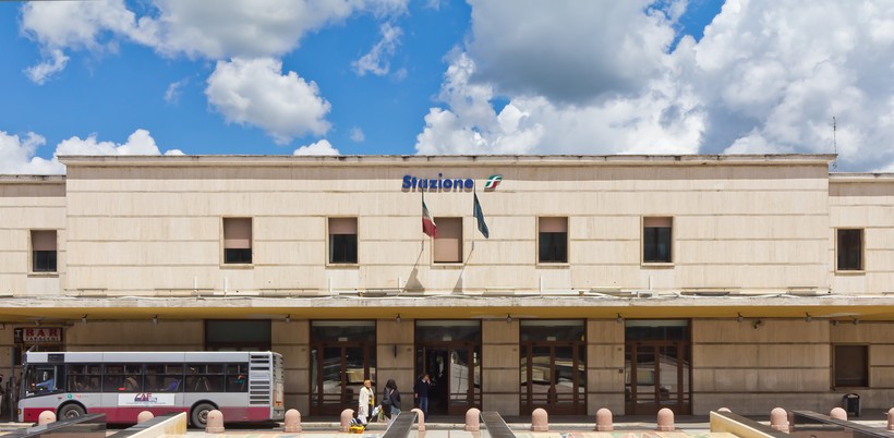 Поезда выезжают с железнодорожной станции, расположенной на Piazza Carlo Rosselli. Вокзал расположен в двух километрах от исторического центра, добраться к нему можно либо на автобусе (маршруты №3, 10, 8, 17, 10) за 5 минут, либо пешком за 30 минут. Учитывайте, что местность в Сиене довольно холмистая, поэтому с багажом или тяжелыми сумками такие прогулки могут быть довольно утомительными.