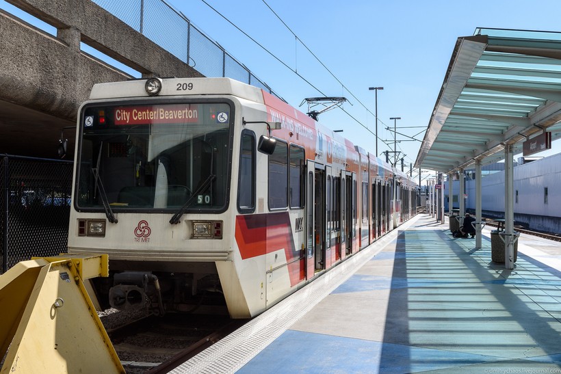 Доехать из аэропорта до города можно на скоростном трамвае (MAX Light Rail). Для этого нужно попасть на станцию Portland Int'l Airport Station, которая находится рядом с аэропортом и сесть на трамвай красной линии. Уехать этим видом транспорта можно каждые 10–15 минут на протяжении дня.