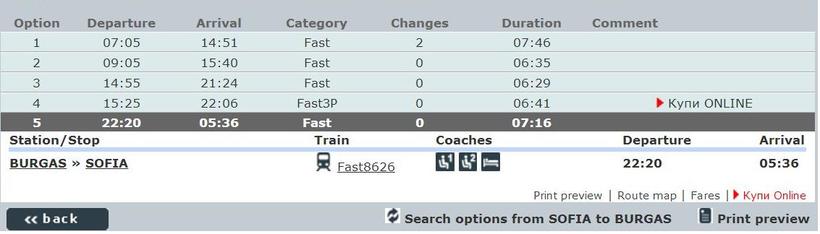 В зависимости от категории поезда, проезд в одну сторону обходится в 18,90-20,40 лв (в среднем, 10 евро). А при покупке туда/обратно, можно сэкономить немного: 34,00-36,70 лв (18 евро).