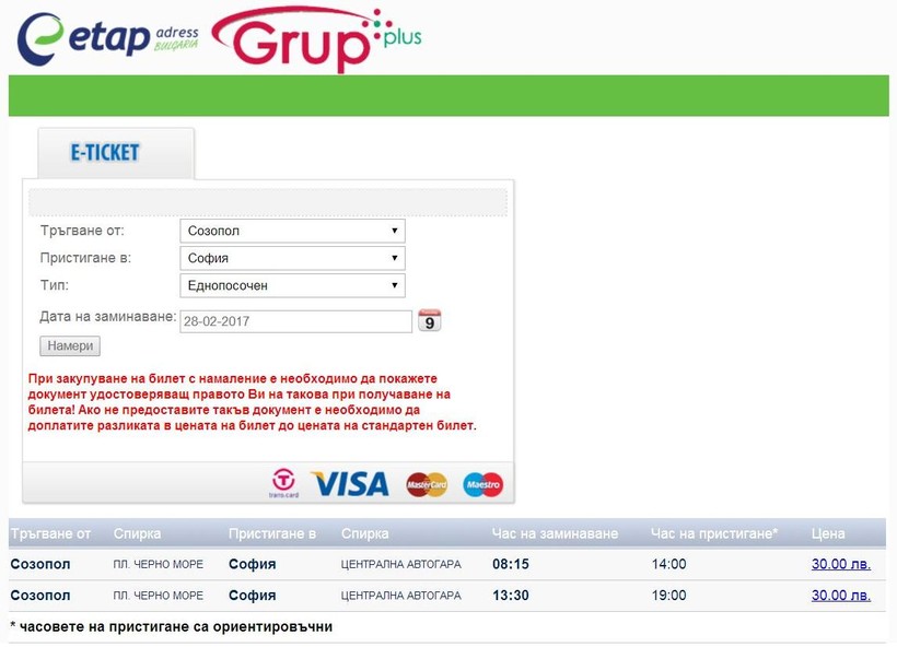 Билеты продаются в кассах автовокзалов и автостанций, можно также оплатить проезд через интернет-сайт перевозчика. Если планируете возвращаться назад в Софию, рекомендую сразу покупать билет в обе стороны одним платежом, тогда будет небольшая экономия.