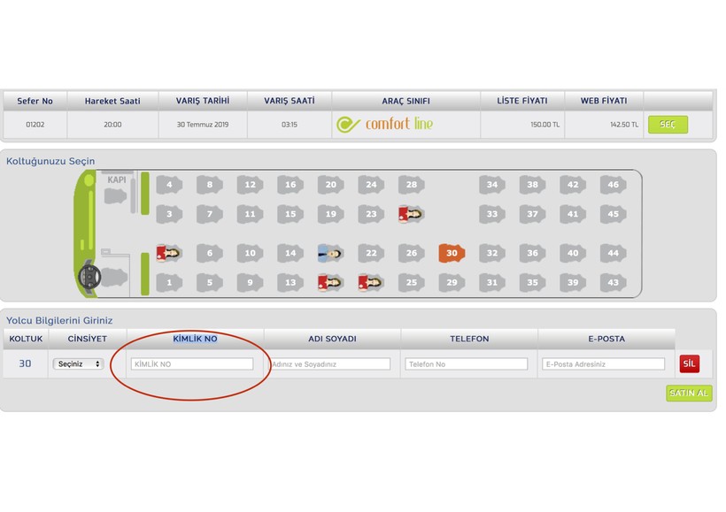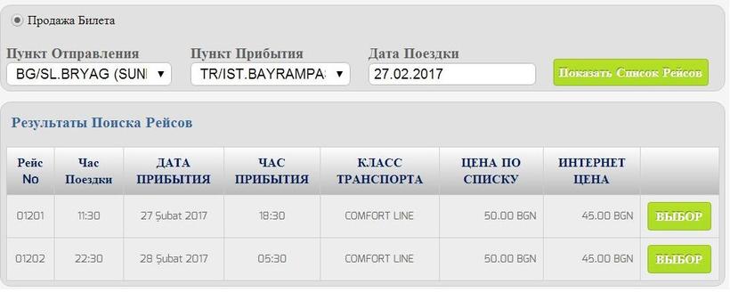 - Онлайн: для меня покупка билетов оказалось не такой простой задачей, как казалось на первый взгляд. В моих браузерах почему-то открывается только турецкая версия сайта. Попробуйте поискать болгарскую, а еще лучше русскую версию этого сайта, но в целом и на турецком там интуитивно понятно, куда нужно нажимать. Жмем на мою ссылку, выбираем нужное нам направление BG/SL.BRYAG (SUNNY BEACH) – TR/IST.BAYRAMPASA. Точка прибытия в Стамбуле единственная - это крупный автовокзал в районе Bayrampasa. Других вариантов там на сайте нет, так что не беспокойтесь, если вдруг подумаете, что ошиблись. Выбираете подходящую для вас дату, далее выбираете места в автобусе и заполняете данные пассажиров. При заполнении данных, вас в ступор может ввести требования первой колонки. В эту колонку по идее нужно вводить индивидуальный ID номер, который есть у каждого гр-на Турции, сайт то турецкий. У нас данного документа нет. Почитав форумы, нашел только одну рекомендацию по этому вопросу: просто вводите дату вашего рождения в следующем формате: 891908 – т.е. 19 августа 1989. Обратные билеты покупать нужно таким же способом. Данные лично я заполнял латиницей. ВАЖНО!!!! БИЛЕТЫ НА Э.ПОЧТУ ВАМ НЕ ПРИХОДЯТ. Сразу после покупки у вас будет возможность распечатать билет (или просто его сфотографируйте). Если вдруг вы закрыли вкладку сайта после оплаты – не пугайтесь. Билеты можно снова распечатать уже в офисе компании на Солнечном Берегу. Лично я для перестраховки так и делал: ехал в офис компании и просил распечатать билет. Хотя я уверен, что сфотографированный вариант билета точно подойдет, места забронированы лично для вас.