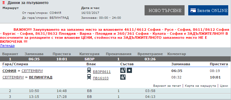 Ниже приведена информация о том, сколько часов вам потребуется, чтобы добраться от Софии до Велинграда, а также приведена примерная стоимость проезда (средняя цена билета) на том или ином виде транспорта.