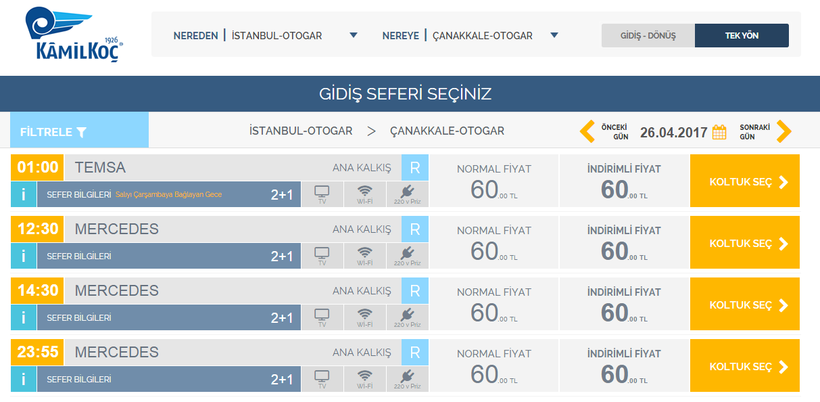 Ехать до Чанаккале 6-7 часов. По окрестностям Стамбула удобно путешествовать автобусами компаний Metroturizm и KamilKoc – у них больше всего рейсов. Автовокзалов в городе много, где садиться на рейс до Чанаккале – это зависит от того, где вы проживаете – в азиатской или европейской частях города. В основном туристы стараются осесть в европейской части. Мы снимали квартиру в районе Башикташ, поэтому нам проще было добраться до Большого стамбульского автовокзала.Удобнее всего ехать ночным рейсом. Наш автобус отправлялся в 23:55, как раз удалось немного поспать в пути. А с самого утра – в 6:30 мы высадились в Чанаккале. По поводу комфорта в салоне могу успокоить – сиденья широкие, мягкие, даже ноги можно вытянуть. Были ещё планшеты в сиденьях, но мы пользоваться не стали – сразу спать легли. Кстати, вайфай в автобусе тоже есть. Разницы между компаниями Metroturizm и KamilKoc особенной нет, так что выбирайте исключительно по расписанию.В Чаннакале нас высадили довольно далеко от города, но, слава богу, городской транспорт работает уже и в половину седьмого, так что мы спокойно добрались до центра на маршрутке.