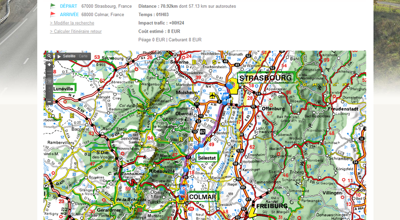 Расстояние от Страсбурга до Кольмара, Эльзас