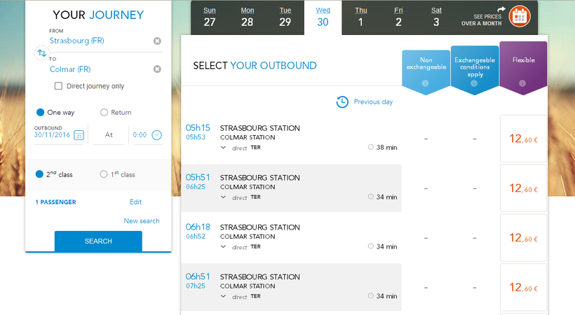 Поезда отправляются с центрального железнодорожного вокзала Страсбурга, расположенного на Place de la Gare, 67000. Вокзал в Кольмаре находится на Place de la Gare, 9.