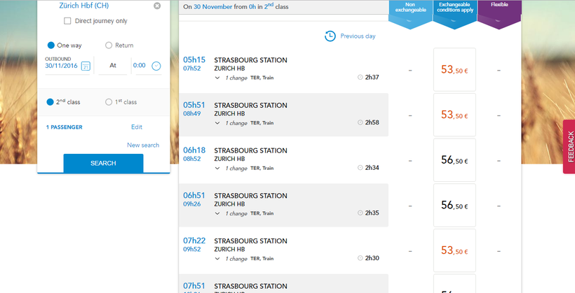 И в Страсбурге, и в Цюрихе есть железнодорожные вокзалы, поэтому добраться из одного города в другой можно и на поезде, правда, придется делать пересадку в Базеле. Составы курсируют с 05:15 до 21:52 с интервалом движения около получаса. В дороге нужно будет провести 2,5-3 часа.