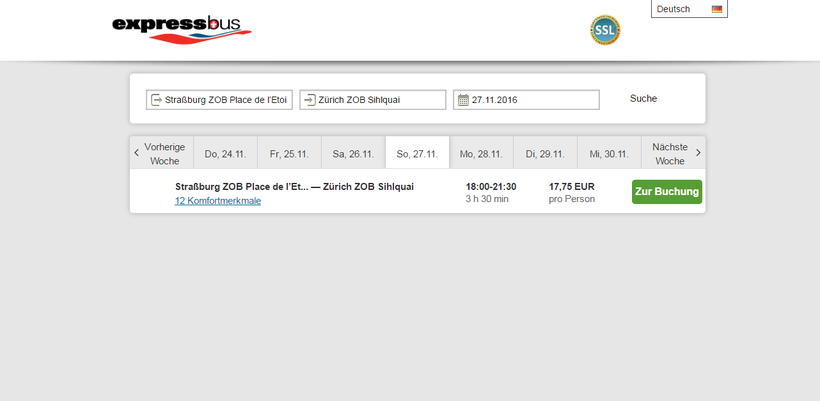 · Expressbus. Компания предлагает вечерний рейсы, отправляясь из Страсбурга с автовокзала, расположенном на Place de l’Etoile, в 18:00 и прибывая в Цюрих на вокзал, который находится на Limmatstraße, в 21:30;