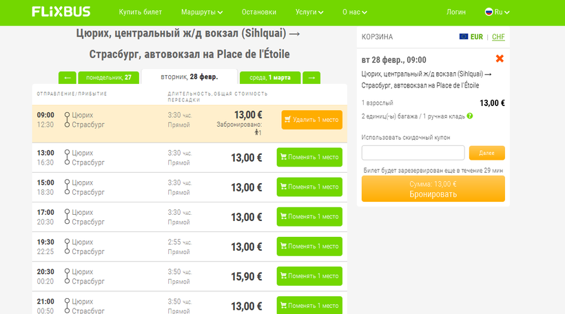 Сайт компании FlixBus имеет русскоязычную версию, поэтому самый простой способ приобрести билет – это просто зайти на портал и оформить покупку на нем.