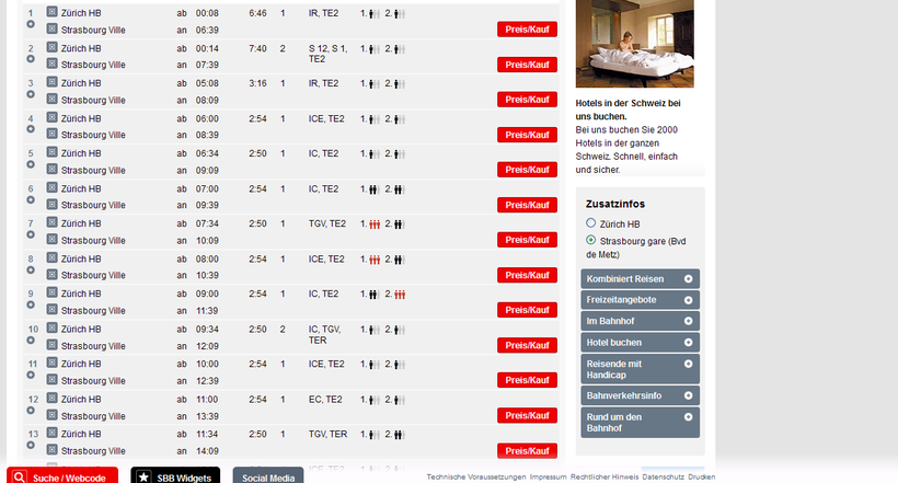 Между Цюрихом и Страсбургом курсируют составы самых разных категорий, отличающиеся скоростью передвижения и уровнем комфорта. Правда, нужно отметить, что все поезда в Швейцарии достаточно удобные и скоростные. Подробную информацию на эту тему советую почитать в этой статье.