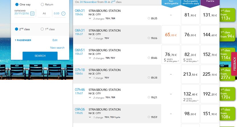 Ниже приведена информация о том, сколько часов вам потребуется, чтобы добраться от Страсбурга до Ниццы, а также приведена примерная стоимость проезда (средняя цена билета) на том или ином виде транспорта.