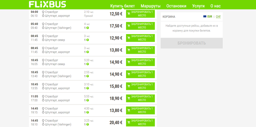 Остальные автобусы предполагают пересадку. В городе они делают остановку на двух автовокзалах: Корнвестхайм и S-Bahn Vaihingen. В пути, конечно, нужно будет провести чуть больше времени – около 4-5 часов.