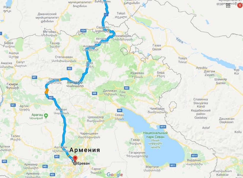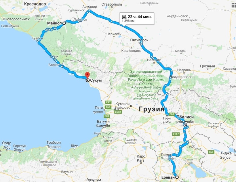 Сухум — Ереван — маршрут на карте