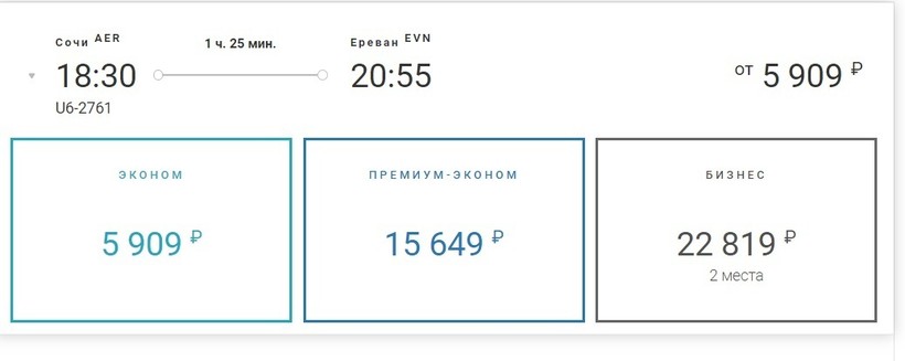 Билет до Краснодара стоит 1000 рублей, а до Еревана 280 рублей. Багаж оплачивается отдельно.