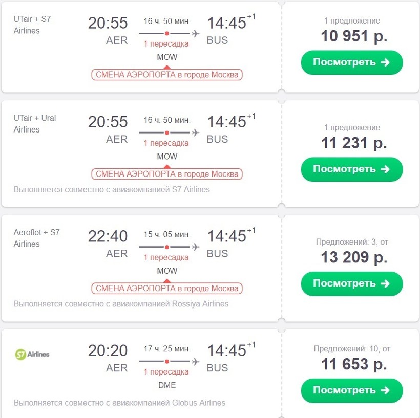 Первый рейс выполняет компания Aeroflot, второй S7 Airlines. Также вы можете долететь до Батуми и с пересадкой в Стамбуле, например.