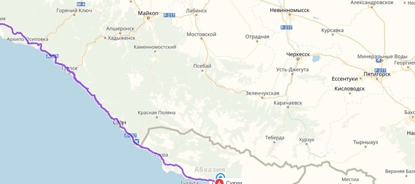 От города Сухум до Крымска по трассе почти пятьсот километров. Сначала вам нужно будет добраться до границы с Россией, которая проходит по реке Псоу. Кстати, для граждан Абхазии безвизовый режим пребывания на территории РФ длится только 90 суток. После прохождения границы вам необходимо выехать на трассу М-4. Здесь очень хорошее покрытие и развитая инфраструктура. Вы проедете через Адлер, Сочи, Туапсе и Джубгу. В районе села Молдовановка (Туапсинский район) съезжайте на трассу А-146. Сразу почувствуете разницу, ведь асфальт тут станет намного хуже. Останется проехать всего лишь 180 километров.