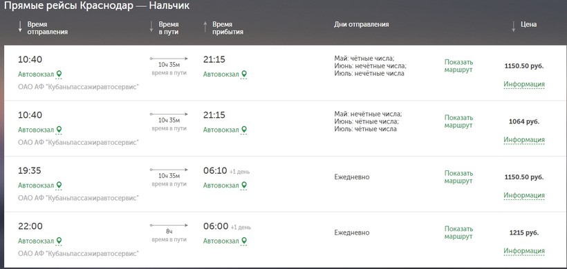 За проезд в автобусе в Нальчик придется выложить от 1 150 рублей.