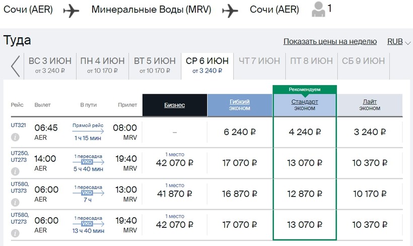 - Далее можно сесть на самолет в Минеральные Воды. Авиаперелеты по маршруту Сочи — Минеральные Воды осуществляет Utair.