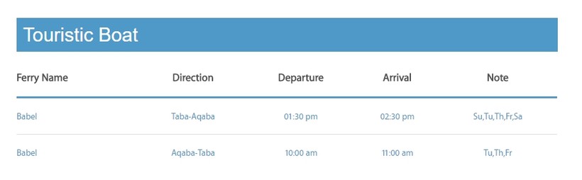 Мой маршрут выглядел следующим образом: Таба — Акаба — Петра. Удобнее добираться из Табы в Акабу на пароме, ведь автобусы и поезда по маршруту не ходят, а брать в машину на прокат не стоит (надо будет кучу денег отдавать за перерегистрацию, изменение номера и тому подобные вещи, это долго, неудобно и требует много усилий). Несколько раз в неделю с порта Табы в Акабу курсирует два-три парома.