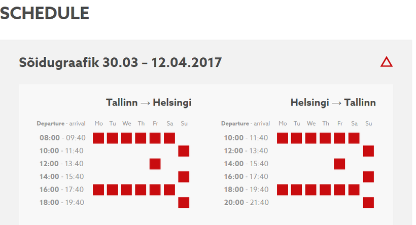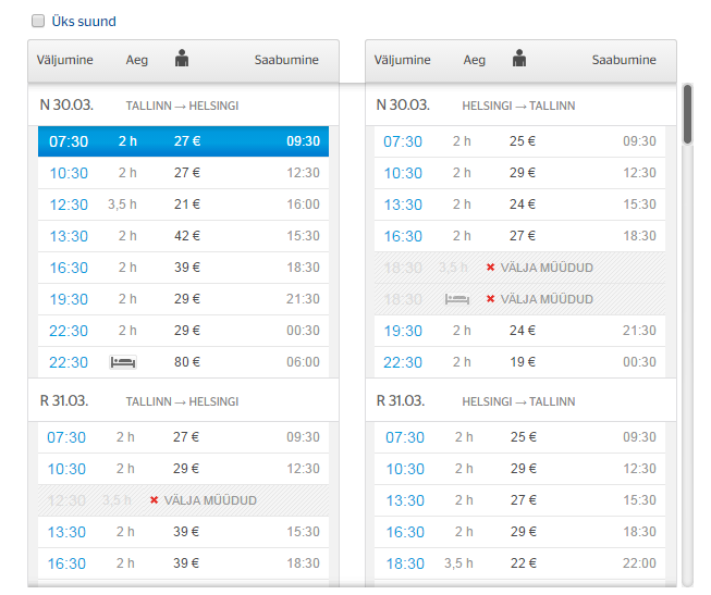 Ниже приведена информация о том, сколько часов вам потребуется, чтобы добраться от Таллина до Хельсинки, а также приведена примерная стоимость проезда (средняя цена билета) на том или ином виде транспорта.
