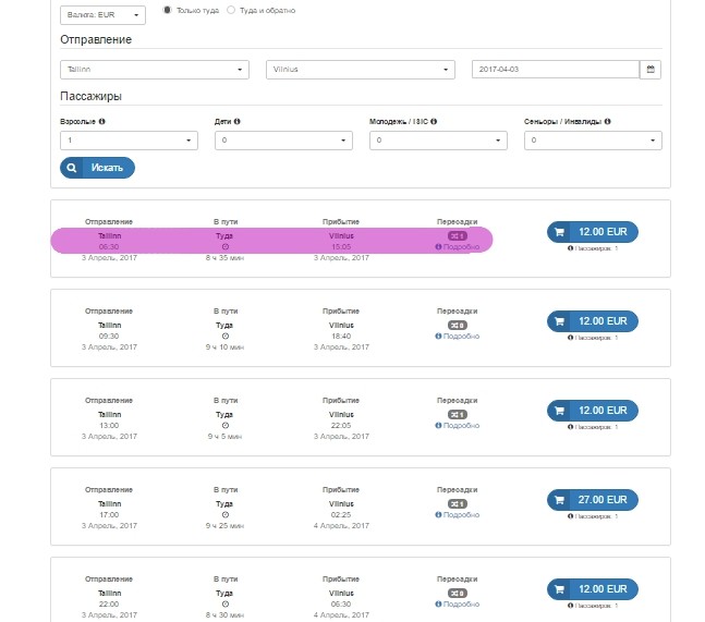 Регулярная цена билета из Таллина в Вильнюс 12 евро.