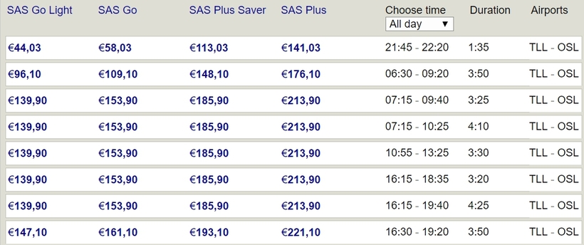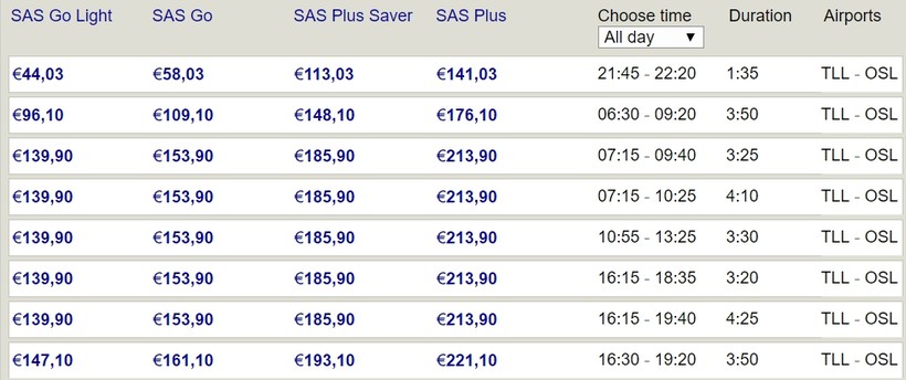 Ниже приведена информация о том, сколько часов вам потребуется, чтобы добраться от Таллина до Осло, а также приведена примерная стоимость проезда (средняя цена билета) на том или ином виде транспорта.