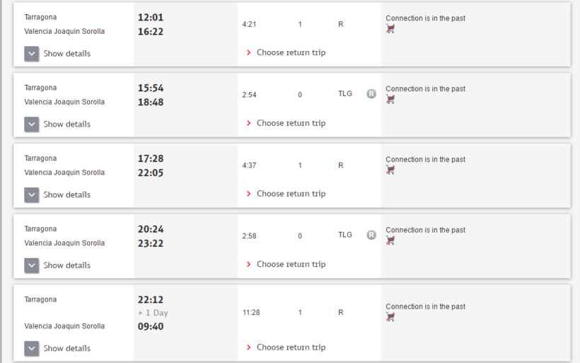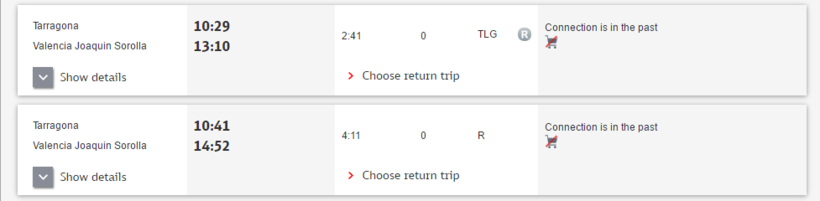 Второй вариант предусматривает поездку в Валенсию. И опять отправляемся в путь на поезде. Расписание смотрим самостоятельно или читаем скрин.