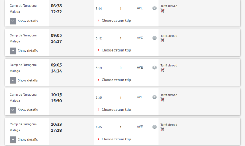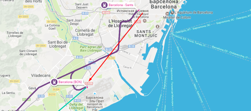 Почему то прямых рейсов нет в Малагу из Таррагоны. Чтобы туда добраться есть два варианта. Садимся на поезд и едем в Барселону. В рейсах недостатка нет, так как они курсируют каждый час, точное расписание смотрите на официальном сайте перевозчика. В пути чуть больше часа. Второй этап – добираемся в сам аэропорт на электричке,