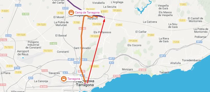 Для начала на автобусе едем на ж/д станцию «Camp de Tarragona»,