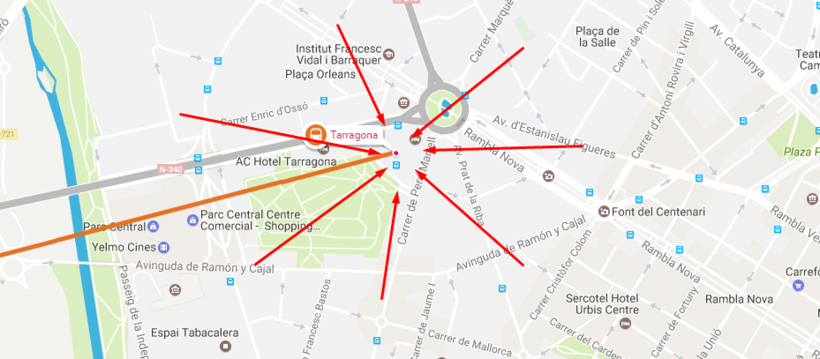 от автовокзала, что расположен возле отеля Пласа Империрал де Таррако.