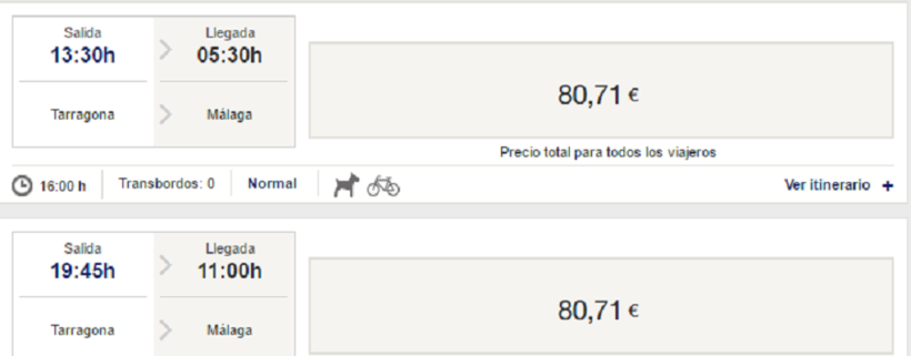 Ниже приведена информация о том, сколько часов вам потребуется, чтобы добраться от Таррагоны до Малаги, а также приведена примерная стоимость проезда (средняя цена билета) на том или ином виде транспорта.