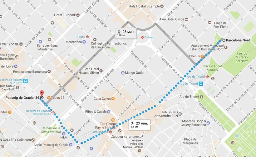 Садиться нужно на автостанции в Таррагоне, а выходить на остановке Ps. De Gracia, 36 в Барселоне, время в пути 1:10-1:20. Следующий автобус отправляется с вокзала Nord, до которого идти пешком еще минут 20. Если у вас с собой много багажа или маленькие дети, лучше выбрать первый вариант автобуса, который высаживает пассажиров на вокзале Nord.