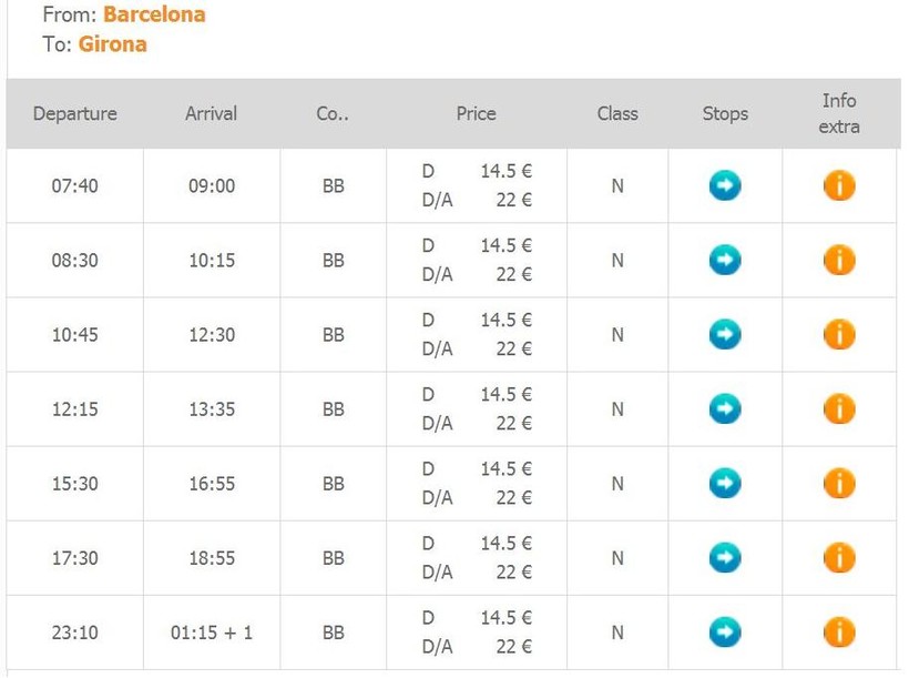 Автобусный перевозчик Empresa Plana также совершает прямые рейсы до Барселоны. Описывать все расписание не вижу смысла, оно разное, в зависимости от дня недели и даже от сезона. Лучше смотреть актуальные рейсы по ссылке.