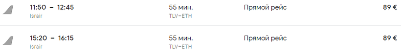 Кроме этого прямые рейсы по четвергам, субботам и воскресеньям в Эйлат совершает и компания Israir.