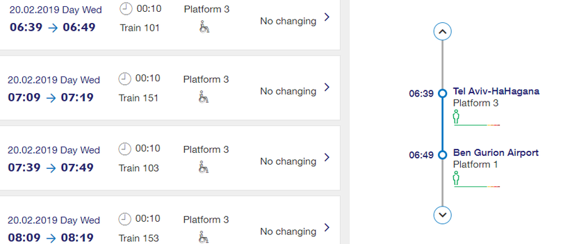А аэропорт Тель-Авива «Бен-Гурион» находится всего в 14 км от центра города, и к нему можно добраться с главного ж/д вокзала Tel Aviv Ha'Hagana (32 HaHagana Way) прямыми поездами за 11 мин.