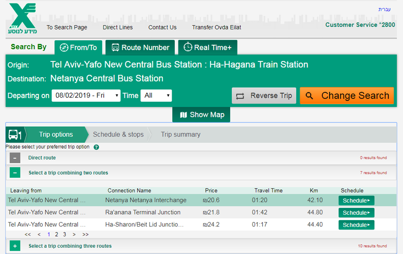 Ниже приведена информация о том, сколько часов вам потребуется, чтобы добраться от Тель-Авива до Нетании, а также приведена примерная стоимость проезда (средняя цена билета) на том или ином виде транспорта.